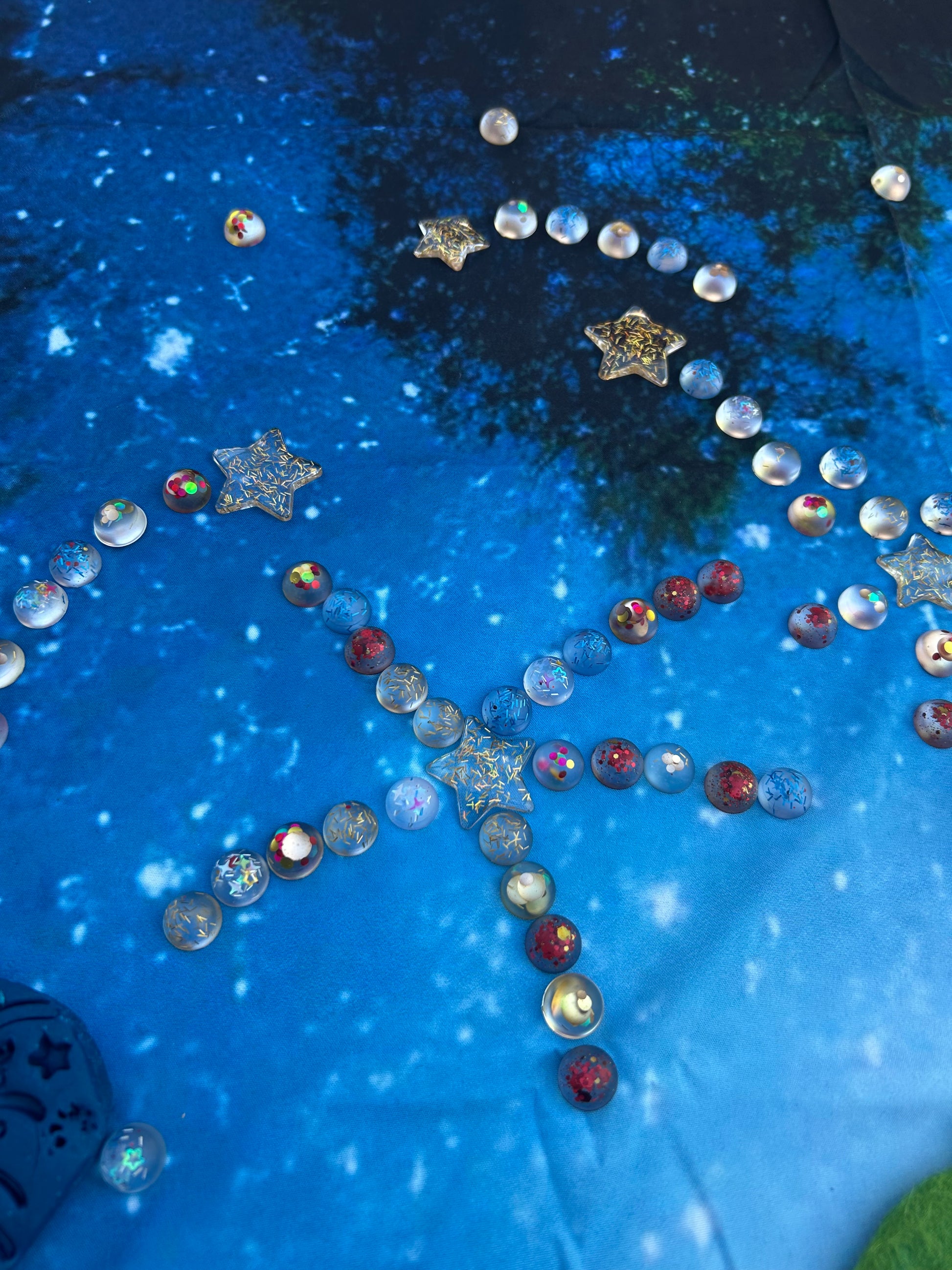 - Mini round night sky mat, one side black, one side black with stars (made by Sew Honeybee Crafts)