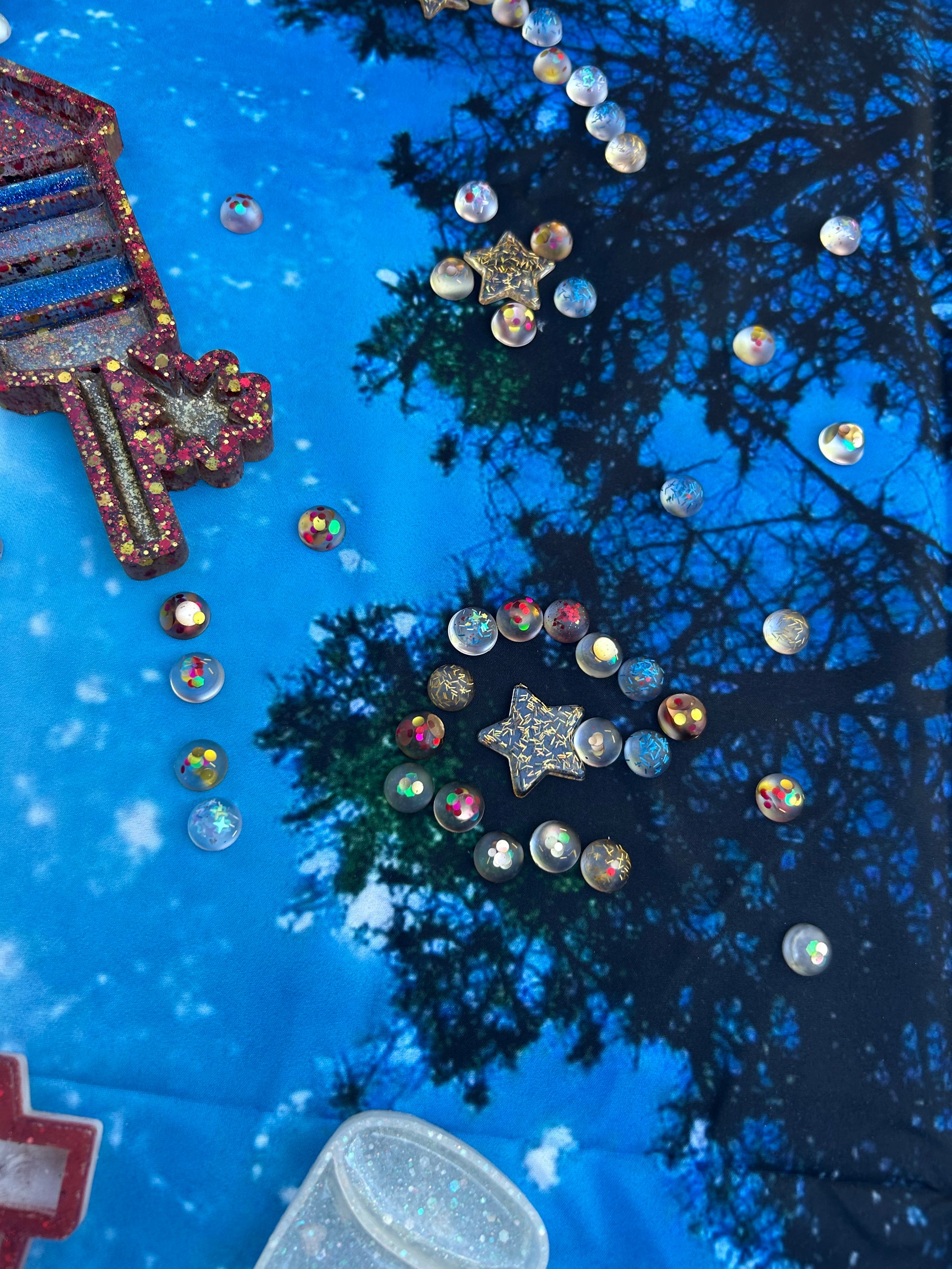 2 sparkly stars, a micro bag of firework Reusabase (not customisable) - averages 60 pieces .